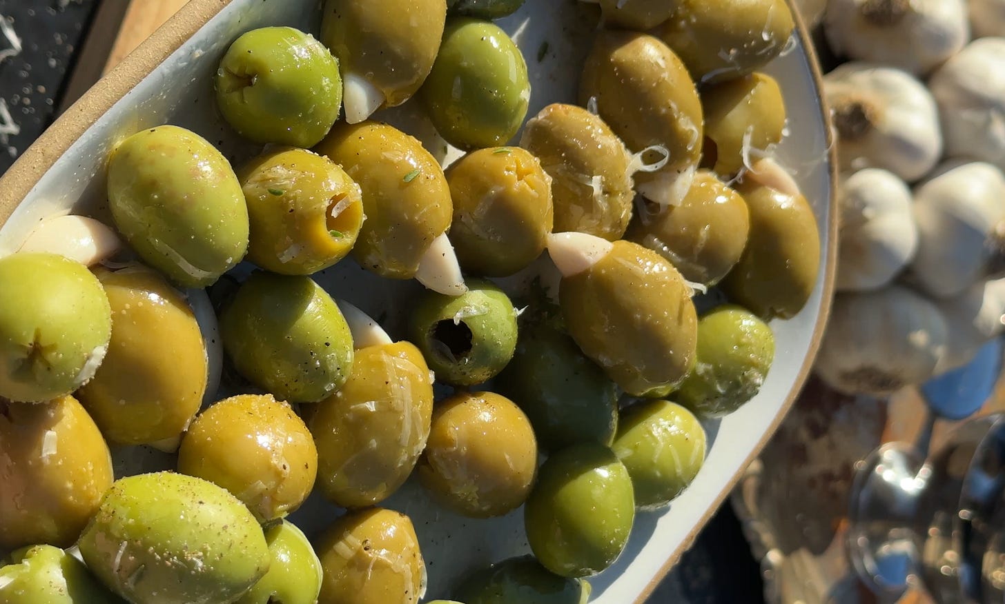 Garlic Confit, Garlic Confit Fat Washed Gin, Garlic Martini's, and Truffle & Thyme Marinated Olives... say that 10x fast.